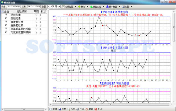 2、方式灵活,支持支持WestGrad多规则质控、Levery-J、Z分数图、累计和图等多种质控方法和模式;